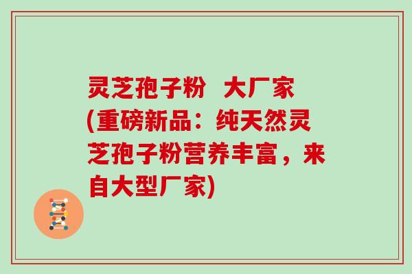 纯天然灵芝孢子粉的大型厂家,是一家拥有多年生产经验的专业厂家,其生产的灵芝孢子粉具有纯天然、高品质、营养丰富等特点。该厂家拥有一整套完善的生产流程,从选材、垂直养殖、采摘、制备、干燥、粉碎到包装全过程严格把关。其生产的灵芝孢子粉不仅品质保证,而且价格合理。