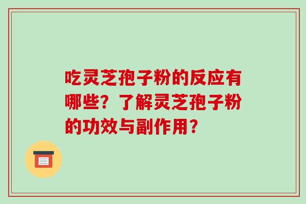 灵芝孢子粉是指由灵芝孢子制成的粉末状产品,具有多种保健功效。然而,作为一种草药,它也有一些副作用。本文将介绍吃灵芝孢子粉的反应和了解灵芝孢子粉的功效与副作用。