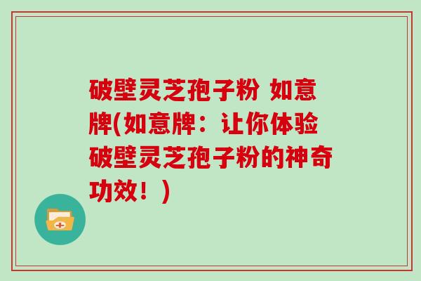 破壁灵芝孢子粉 如意牌:让你体验破壁灵芝孢子粉的神奇功效!