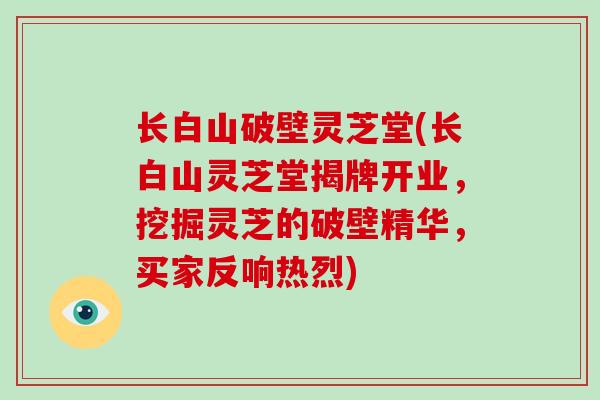 长白山破壁灵芝堂的开业,为消费者提供了更优质、更有效的保健品,也为灵芝这种材揭开了新的篇章。我们希望,越来越多的人能够意识到灵芝所具有的保健优势,选购到优质的产品,真正做到药食同源,达到、强身健体的效果。