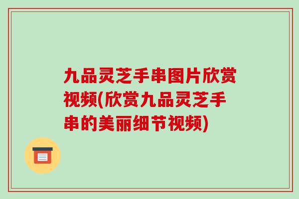 九品灵芝手串不仅具有美观的外观,而且还蕴含着去强身的功效。因此,它备受年轻人的钟爱。以下是九品灵芝手串的美丽细节视频。让我们来欣赏一下吧。