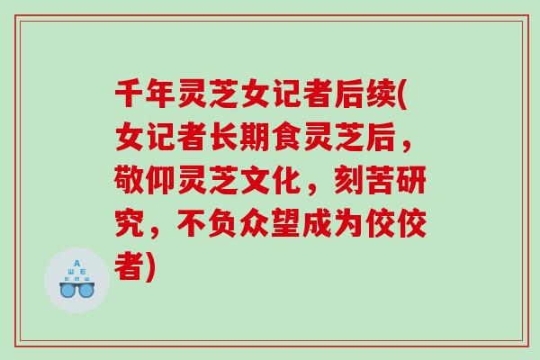 千年灵芝女记者在研究和食用灵芝的道路上,不断地提升自己,也得到了众人的认可。她成为了灵芝文化的爱好者,也是灵芝的倡导者之一。