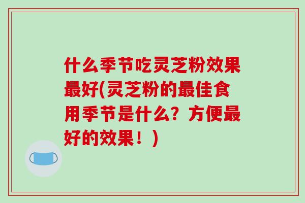 秋季是一个补益身体的佳季节,此时气温适宜,空气清新,是灵芝生长壮大的季节,因此,食用灵芝粉可在一定程度上迎合大自然的规律,帮助身体提升免疫力,补充体内所需的营养成分,、等一系列秋季常见。