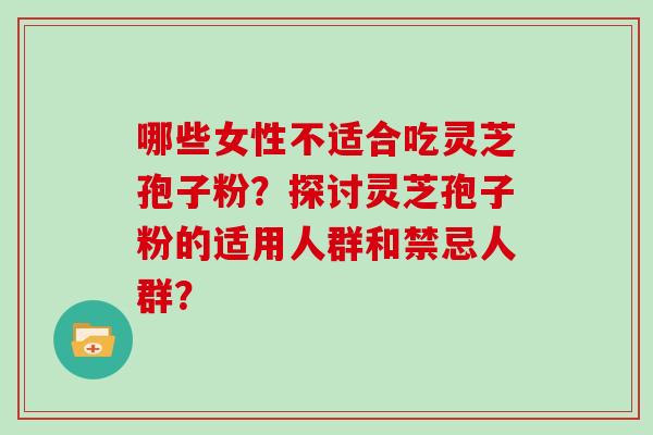 灵芝孢子粉是一种很好的保健品,但并不适合所有女性食用。如果你有慢性、、等症,或者长期熬夜,可以适量食用。但如果你是孕妇、哺乳期妇女、体质者或低者,建议不要食用灵芝孢子粉。在食用灵芝孢子粉之前,咨询医生的意见,以确保自己的身体能够承受。