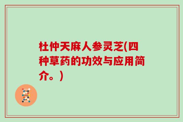 杜仲、天麻、人参、灵芝,这四种草药各具其独到的功效作用,但是它们也都有一个共同点,就是能够提高人体的免疫力。因此,在日常饮食中适当的加入一些这些材,能够尽可能的提高身体健康水平。但是需要注意的是,这些材并不是万能的,如果出现身体不适症状的时候,应该及时就医,不能单纯地依靠的方式去对抗一些。