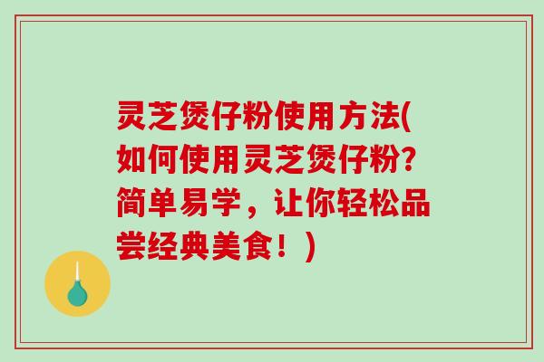 煲仔粉是广东的一道传统美食,而灵芝煲仔粉则是在传统煲仔粉的基础上加入了灵芝成分,口感独特、健康营养。那么,到底如何使用灵芝煲仔粉呢?下面为大家详细介绍。