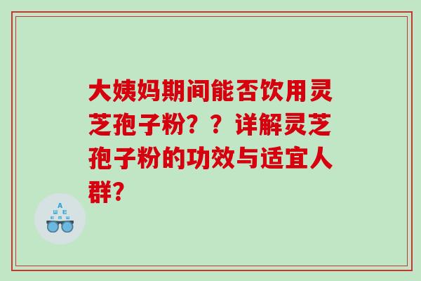 灵芝孢子粉是一种常见的材,具有多种功效。很多女性在大姨妈期间会有疑虑,不知道是否可以饮用灵芝孢子粉。下面我们来详细了解一下。
