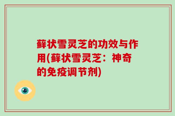 以上是藓状雪灵芝的功效与作用,它具有较为广泛的免疫调节、抗、降、降、等作用,可以帮助人们有效和,提高身体免疫能力,改善身体健康状况。但使用前还需注意个人情况,以免带来不必要的风险和损害。