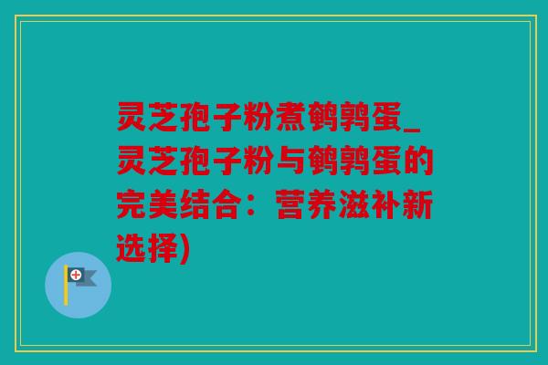 # 灵芝孢子粉煮鹌鹑蛋:灵芝孢子粉与鹌鹑蛋的完美结合,营养滋补新选择